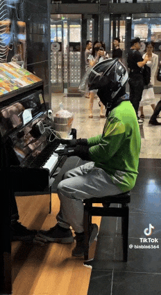 Bin added that the rider’s phone was showing piano scores at the time, suggesting that the man was reading sheet music as he played.
