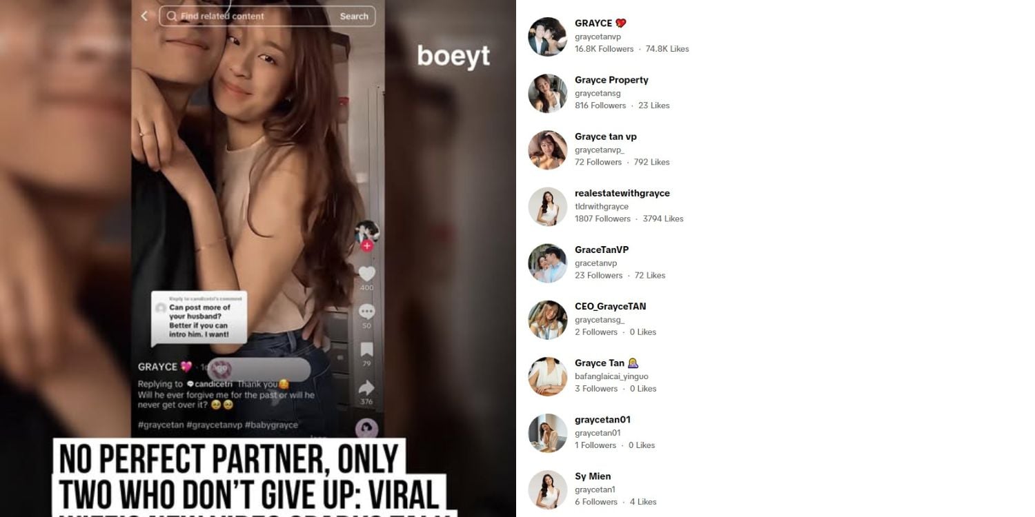 A search for users with “Grayce Tan” on TikTok reveals that at least nine accounts are impersonating her.