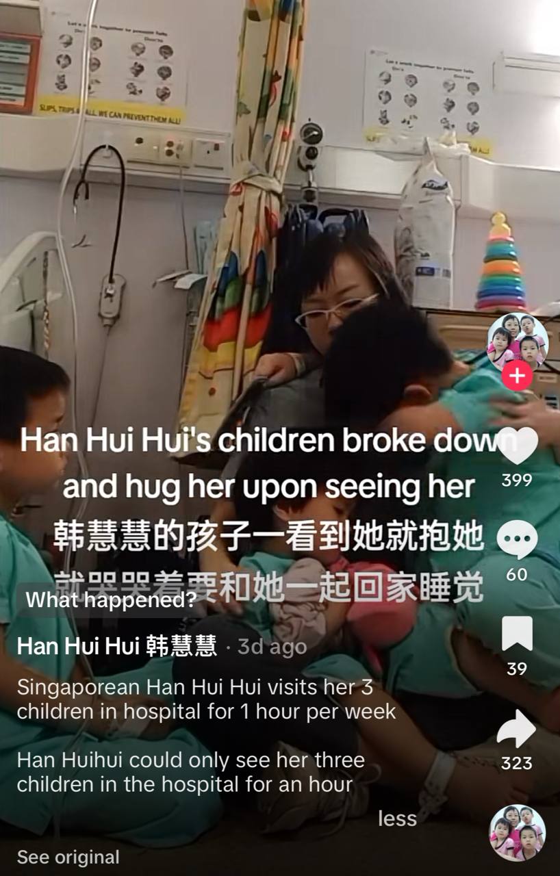 Singaporean activist Han Hui Hui, 33, posted a TikTok on Sunday (8 March) showing her with her three children during a hospital visit.