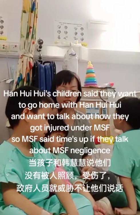 It further alleged that the children wanted to go home and that Ms Han had tried to discuss how they were injured, but the Ministry of Social and Family Development (MSF) ended their one-hour visit.