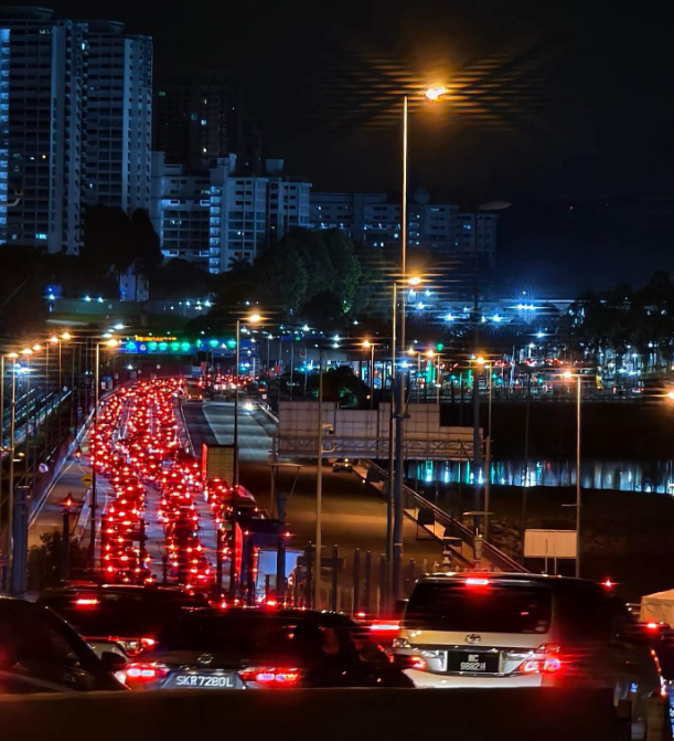 During peak hours, car travellers had to wait up to three hours for immigration clearance due to traffic tailbacks from Malaysia.