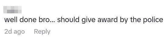 A TikTok user also agreed, saying that the OP’s husband should receive an award from the police.