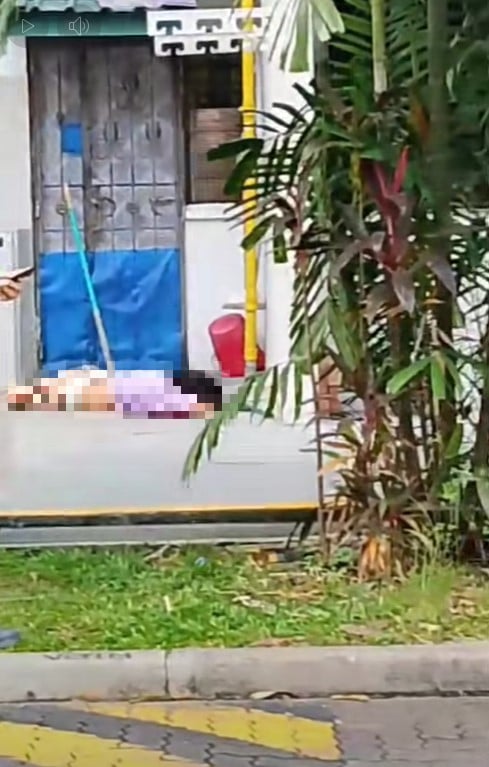 A photo went viral over social media on Thursday (25 Sept), showing the woman lying at the foot of the block in a pool of blood, with a police officer approaching the body.
