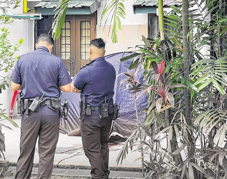 Reporters who arrived at the scene saw several police cars and a blue tent set up over the body.