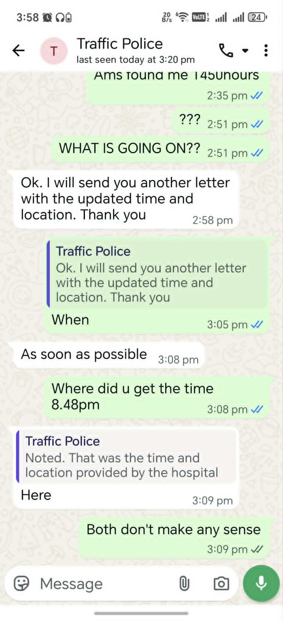 He also noted that the timing of the accident stated in the police letter was inaccurate.