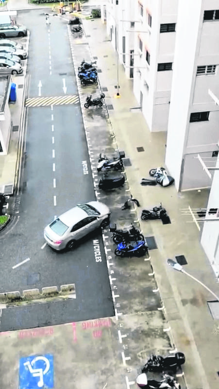 The driver had reportedly ploughed into two motorcycles at an HDB carpark, reported Shin Min Daily News.