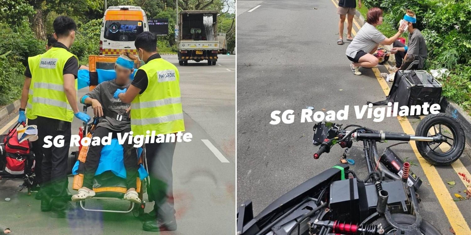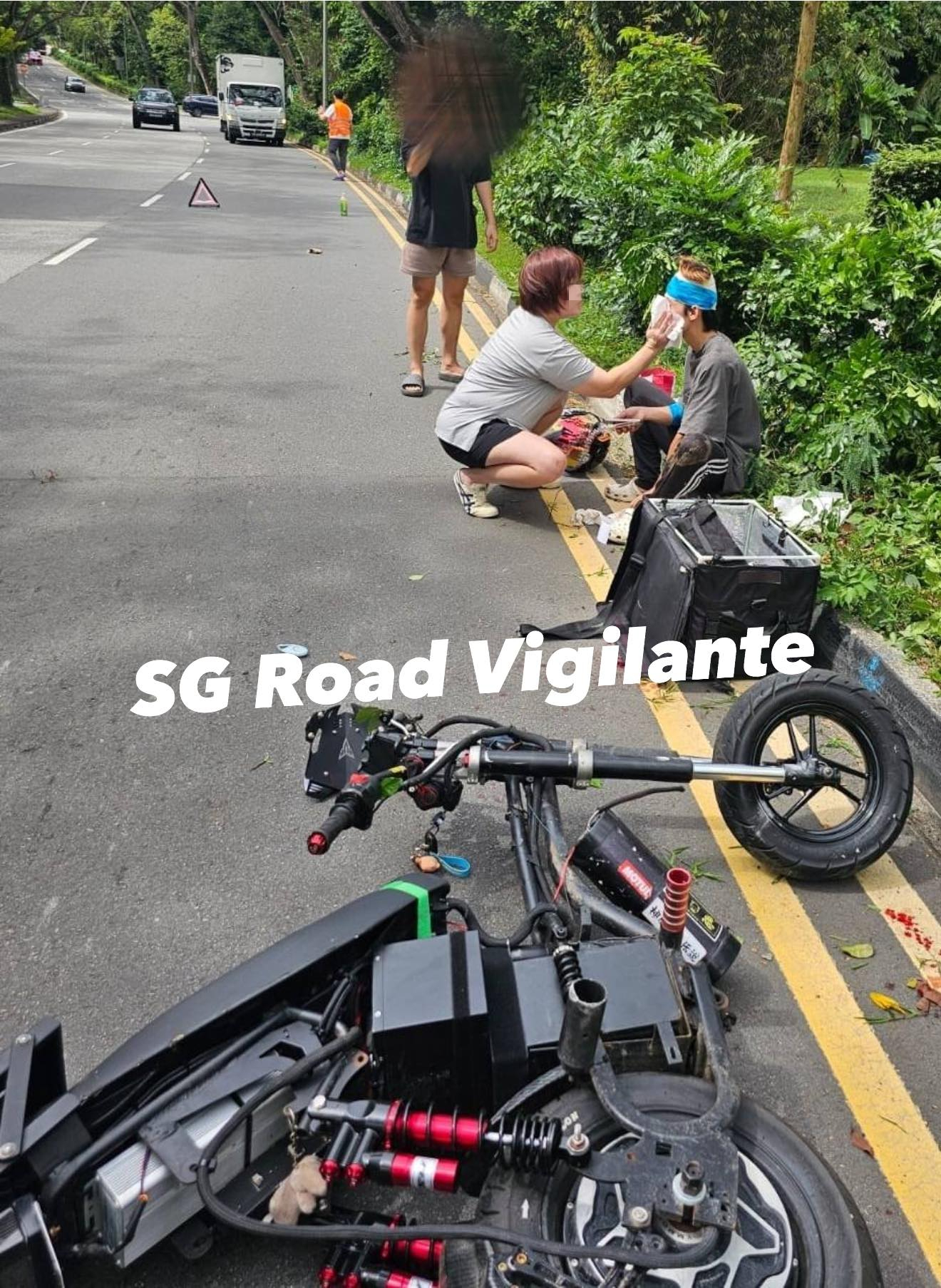 Photos of the aftermath posted by SG FRONT MAN on Facebook showed a man next to the PAB, with an overturned cooler bag, a helmet, vegetables, and a Crocs slipper scattered across the road.