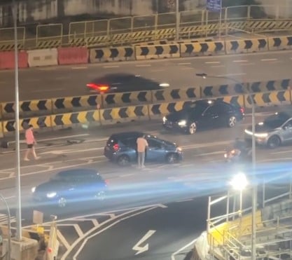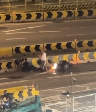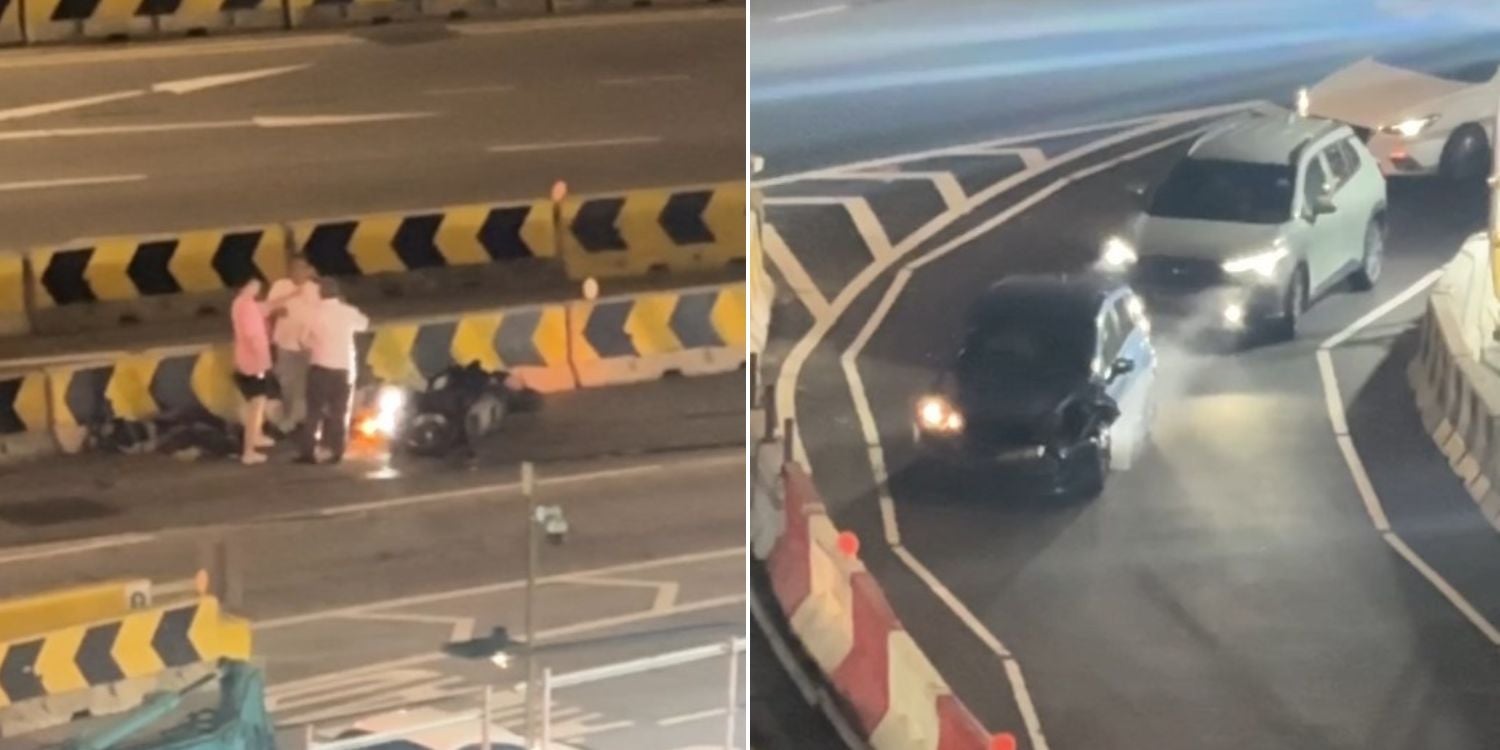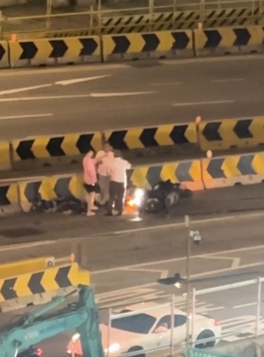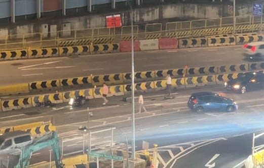In the clip, the motorcyclist appeared to be conscious and moving, but lay next to a makeshift road divider erected due to ongoing MRT construction.