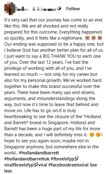 She thanked those she had worked with and said she would miss Holland & Barrett as it had been “a huge part” of her life for more than a decade.