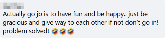 Another commenter said that going to Johor Bahru (JB) was to have fun and be happy. As such, the Singaporean cars should have just been gracious and give way to each other.