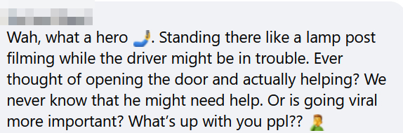 One commenter, however, criticised the bystanders for not stepping in to help the driver, whom they suspected might be “in trouble”.