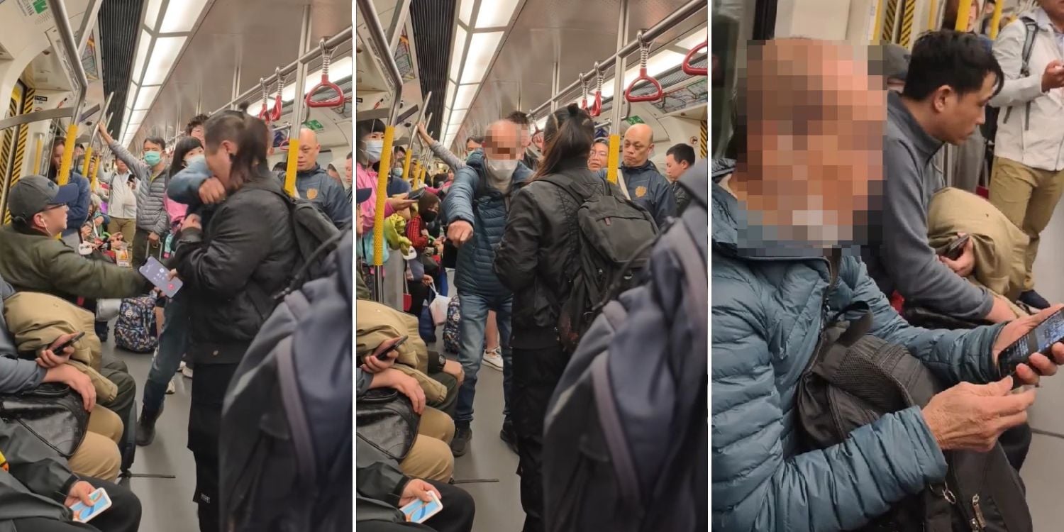 In the latest public transport altercation in East Asia, an elderly man punched a woman in the face on the Hong Kong MTR.