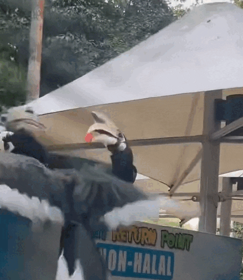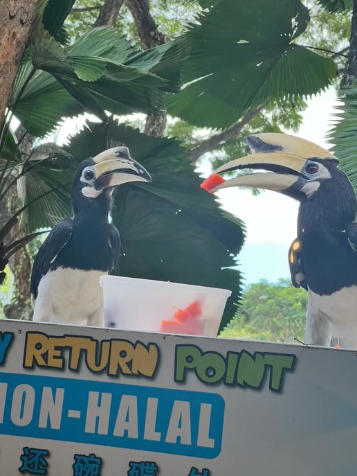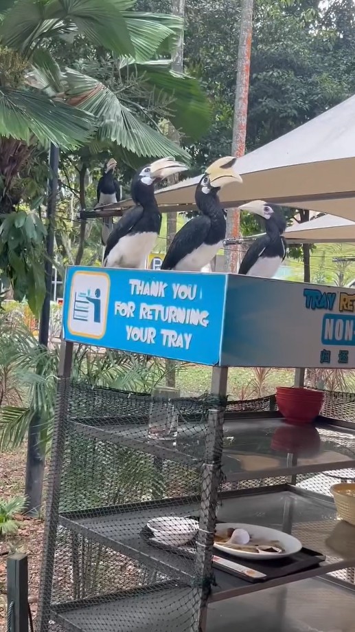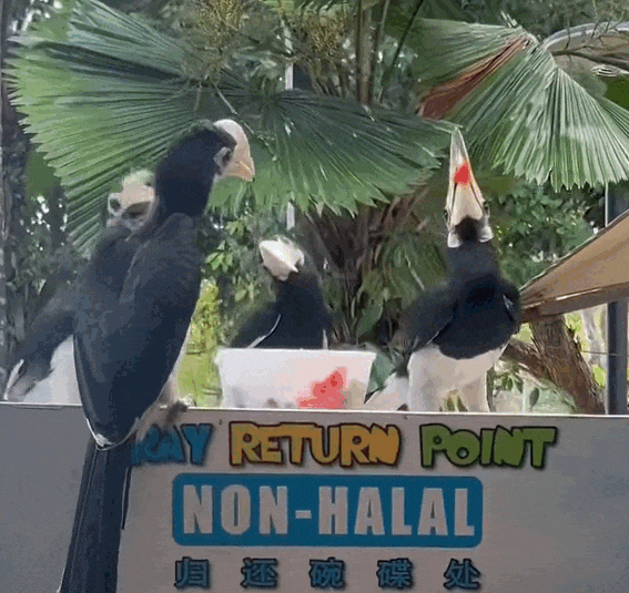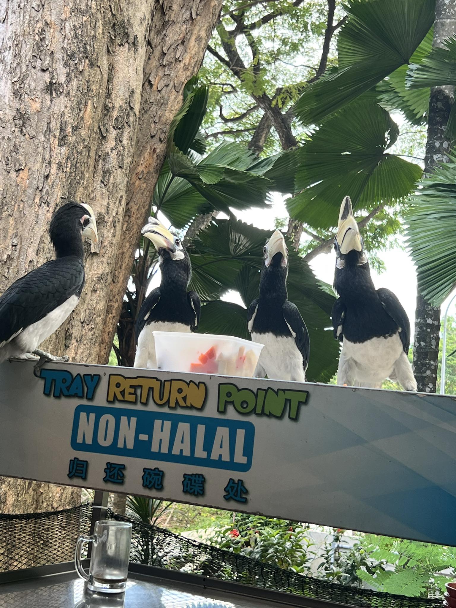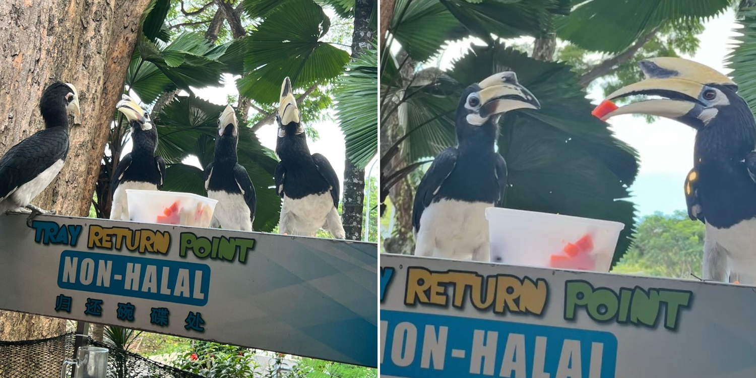 Another commenter jokingly agreed with the tray return rack sign that the hornbills were “absolutely not halal”.