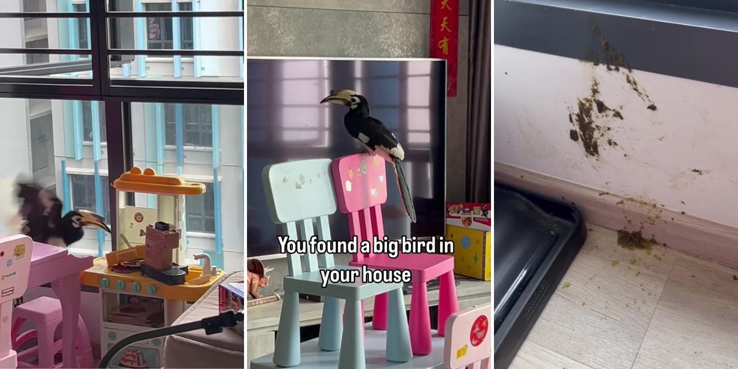 The resident told MS News that after a while, the hornbill eventually flew onto the window grill before making its way out.