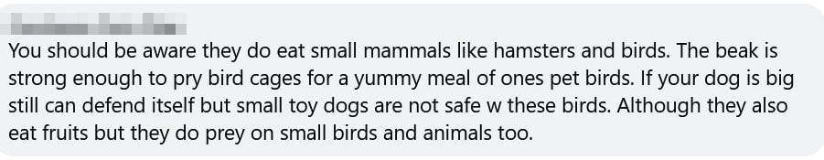 “Small toy dogs are not safe with these birds,” the commenter claimed.