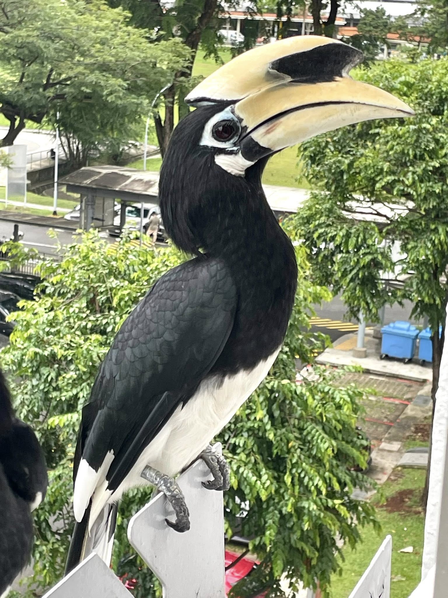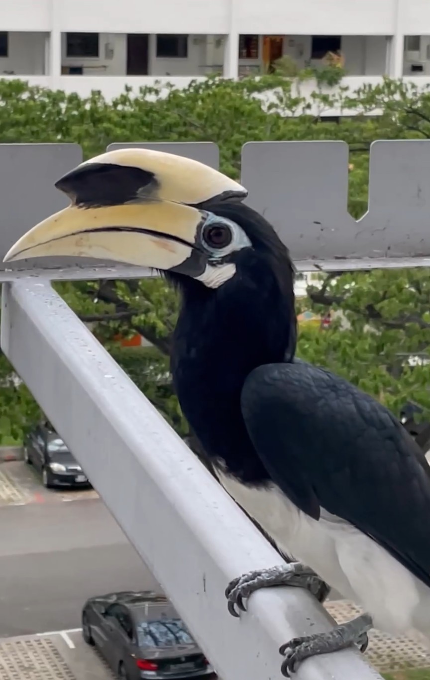 Last Monday (1 Sept), Facebook user Nisa Sanusi shared a close encounter with two hornbills perched on the laundry pole holder outside her Farrer Park HDB window, garnering over 9,000 likes.