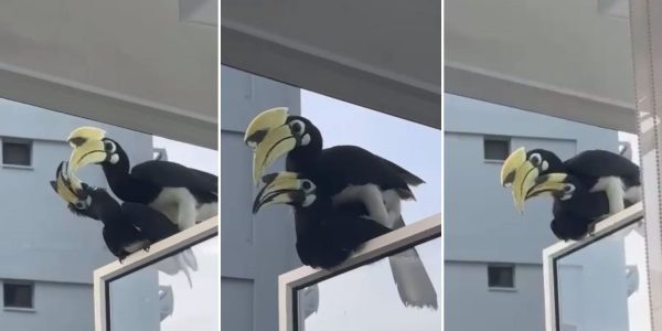 Hornbills visit Toa Payoh resident’s home, they perch on window in compromising position