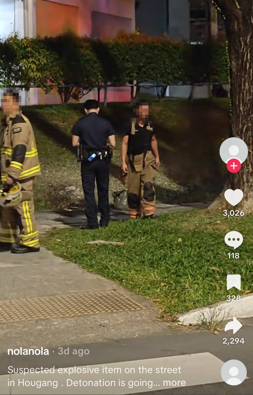 The clip was captioned, “Suspected explosive item on the street in Hougang. Detonation is going to be performed. Stay tuned!”