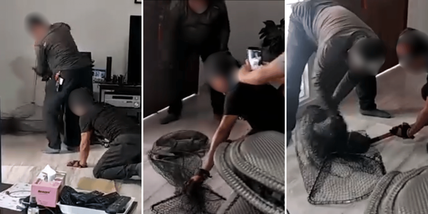A video of the incident was posted on Monday (10 Nov) on Facebook, showing the reptile inside someone’s living room.
