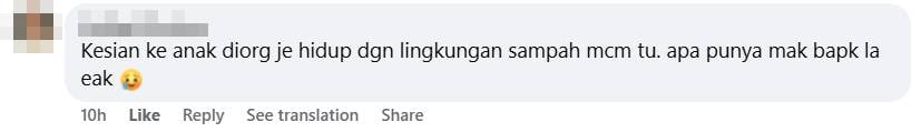 Translation: Only feel sorry for their child, having to live in an environment full of rubbish like that. What kind of parents are they?
