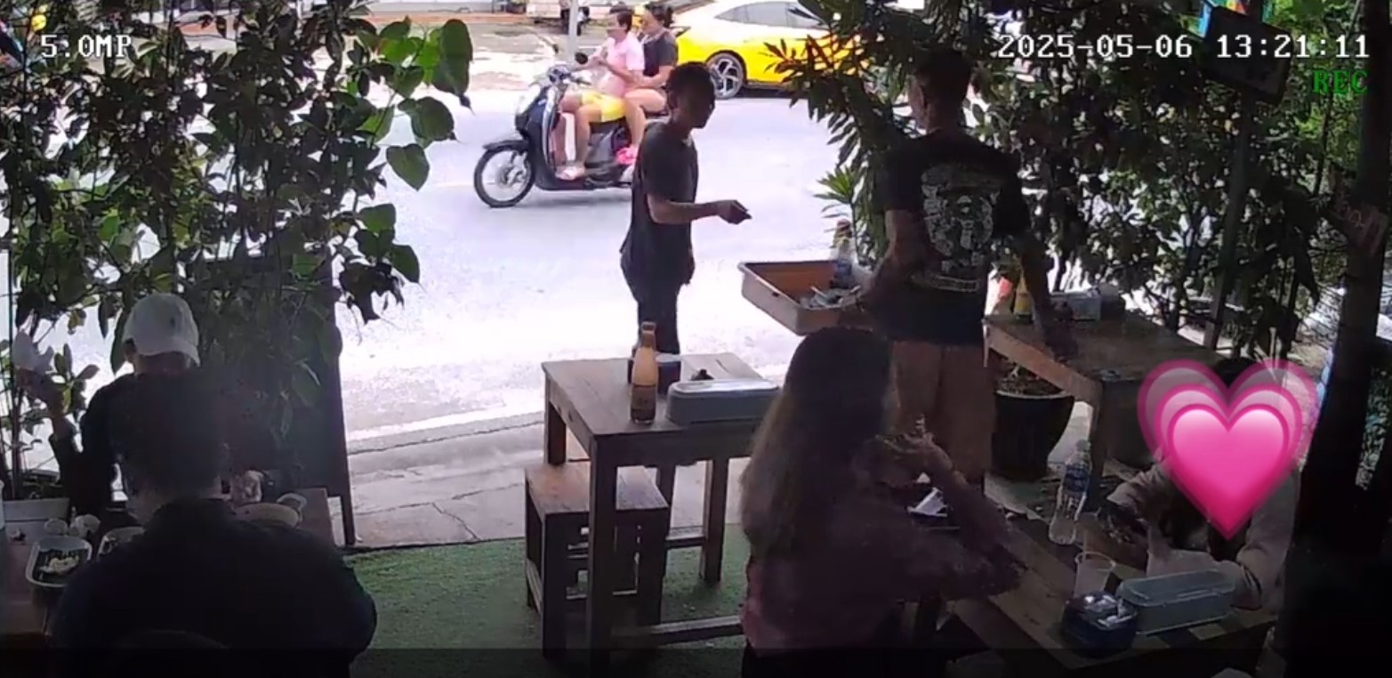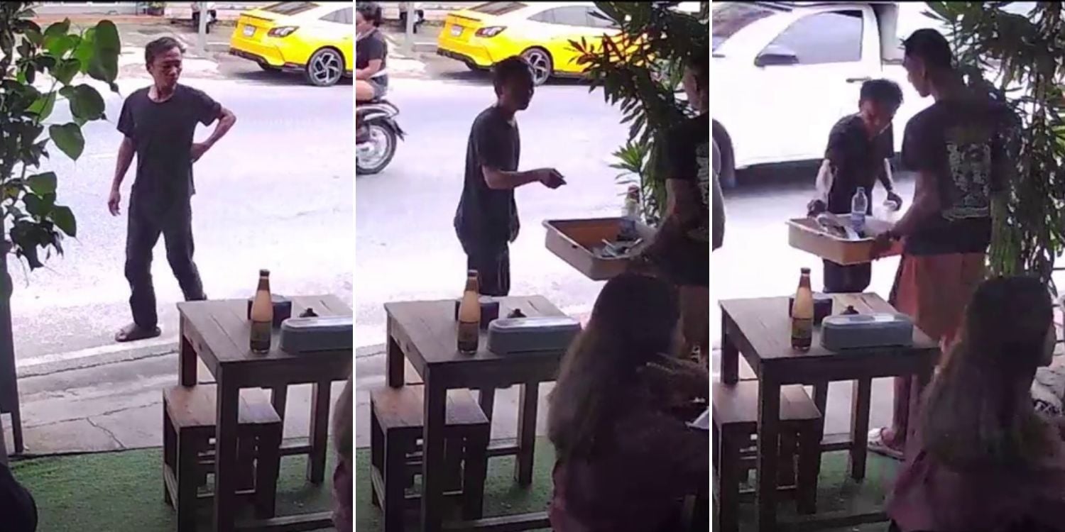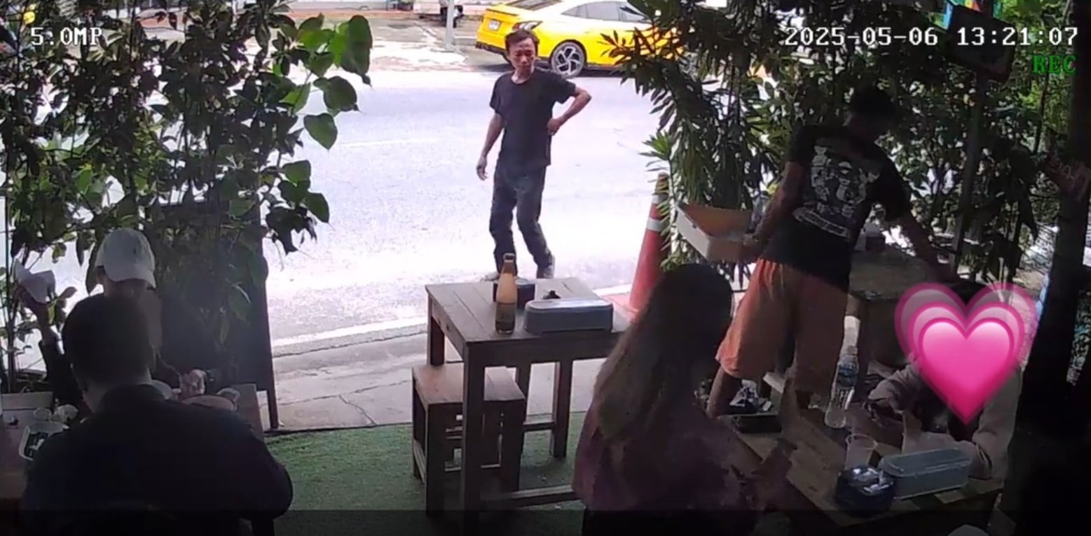 In the caption, the owner of the Rayong-based restaurant explained that the middle-aged man walked past the eatery at 1.21pm on Tuesday (6 May).