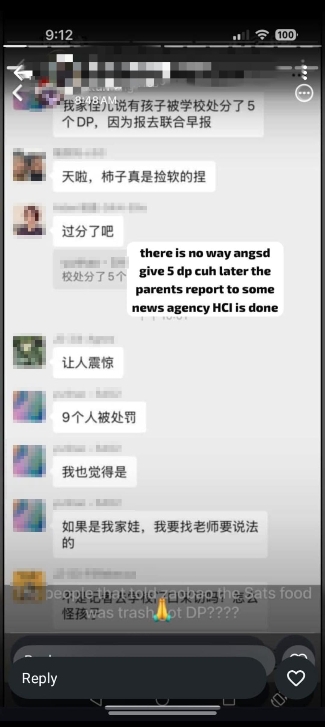 Following reports that Hwa Chong Institution (HCI) students had raised concerns over the quality of pre-packed lunches, a screenshot circulating on Reddit has sparked allegations that students were punished for speaking to the media.