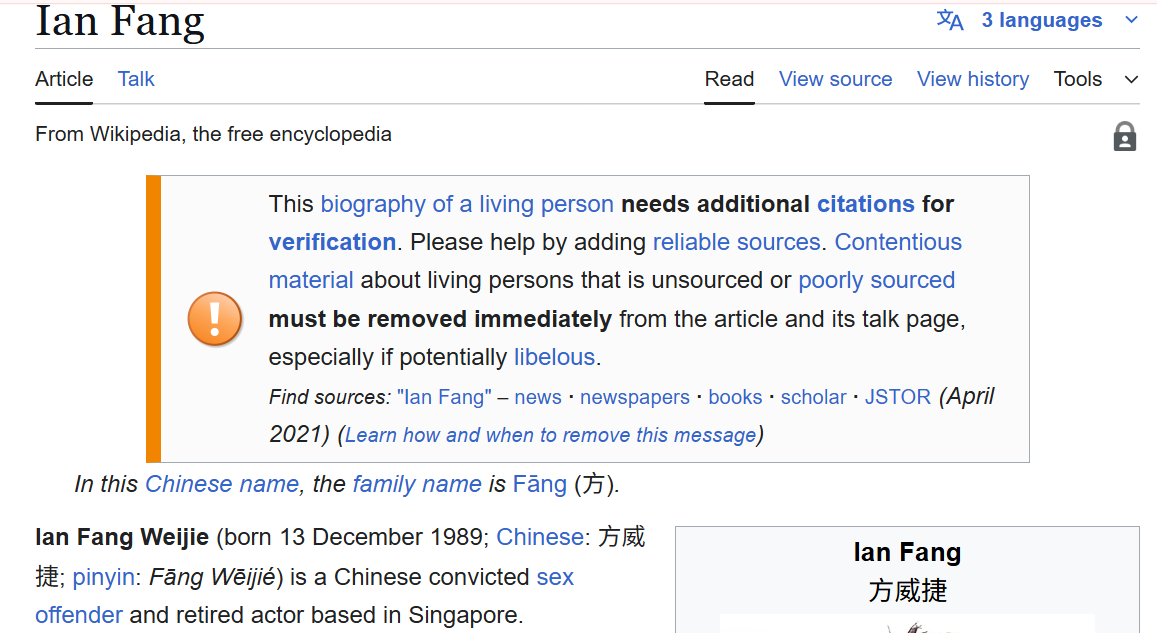 Following the lifting of the gag order and media reports on Fang’s crimes, netizens quickly turned their attention to his Wikipedia page.