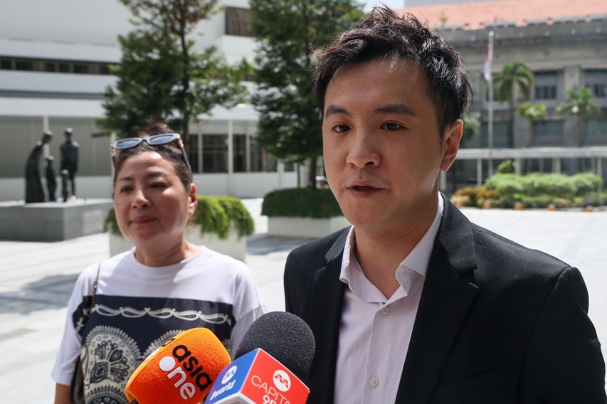 Dressed in a black suit and accompanied by his mother, Fang stopped to address reporters outside the State Courts.