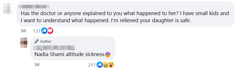 Another user inquired whether the doctor had informed her about the cause of her daughter’s illness. In response, Ms Jacyntha explained that it was due to altitude sickness.