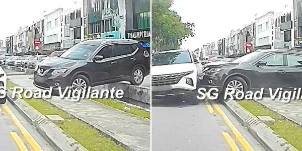 Car mounts kerb in JB & rams into illegally parked S’pore-registered vehicle