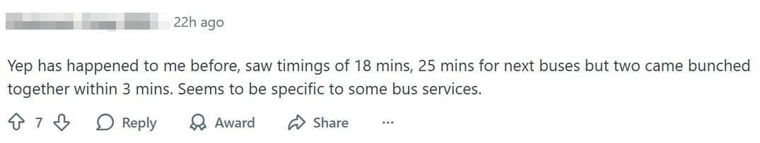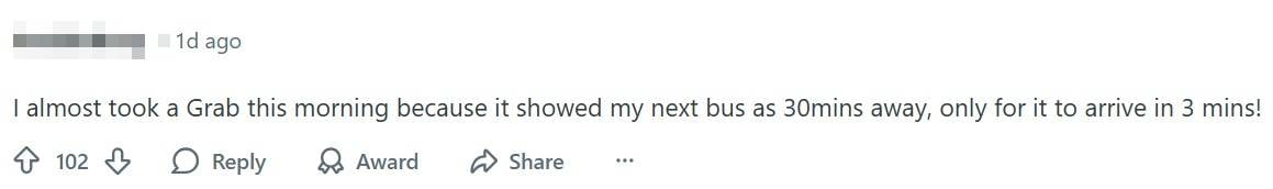 One netizen shared how they almost booked a private-hire ride when their app showed the next bus being 30 minutes away, only for the vehicle to arrive within three minutes.