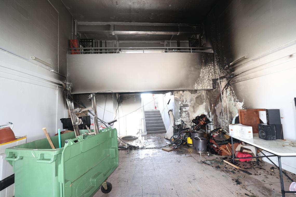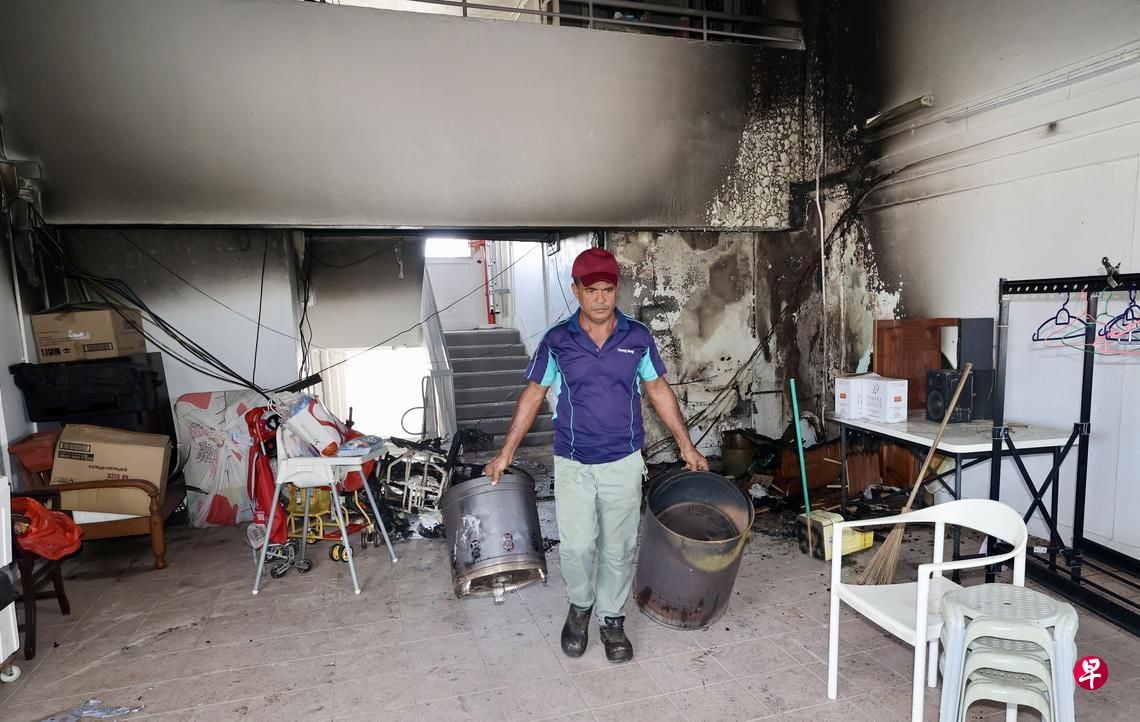 When reporters arrived at the scene at around 10am, the fire had already been extinguished, and clean-up works were underway.