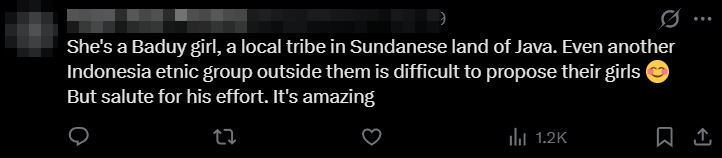 One netizen said that proposing to women from the Baduy tribe is a challenge even for other Indonesian ethnic groups.