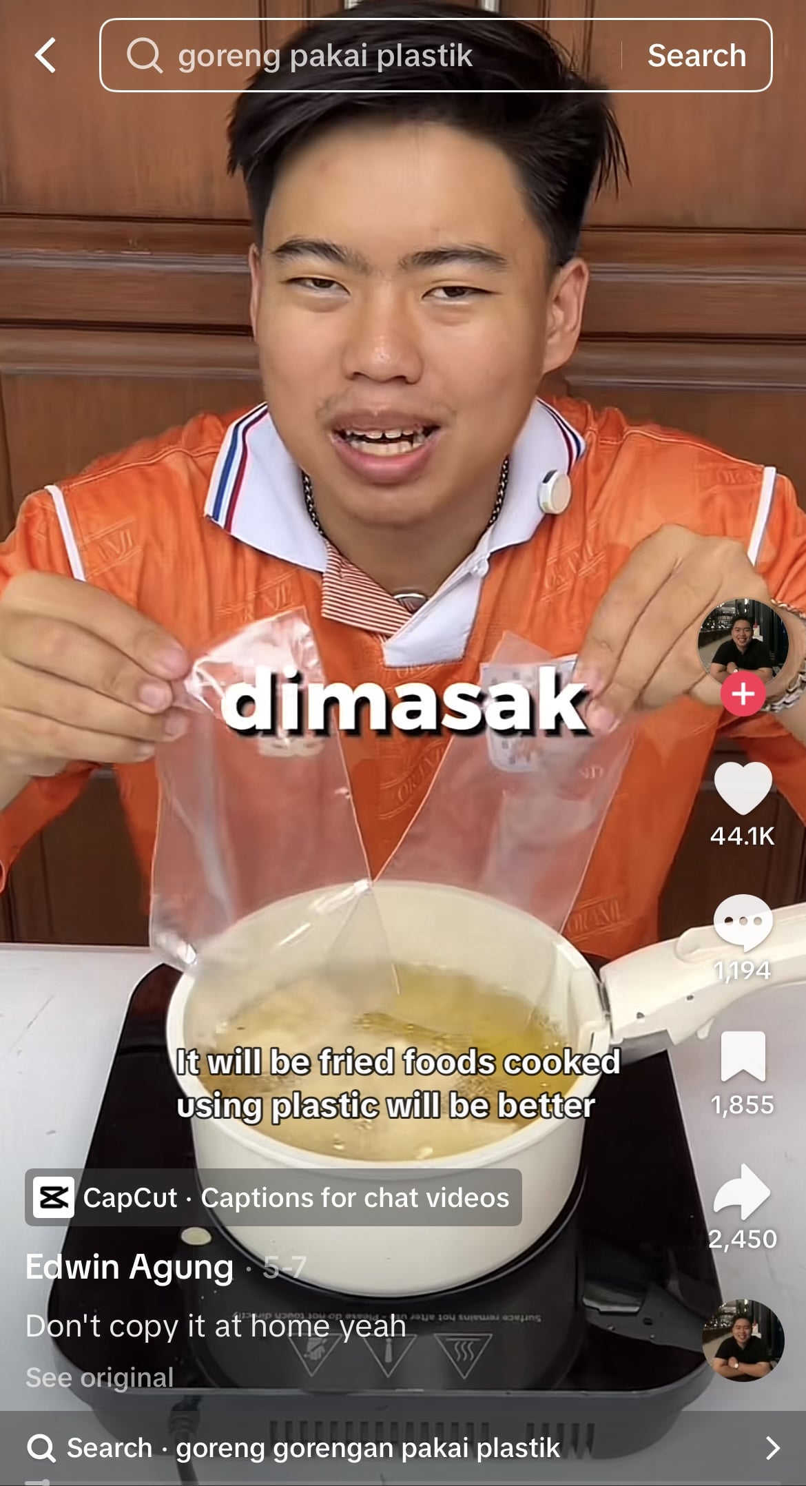 TikTok creator Edwin Kurniawan Agung conducted the experiment to test a long-standing rumour: that some street food vendors in Southeast Asia might use plastic in hot oil to achieve extra crunch.