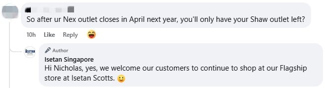 While Isetan did not mention the impending closure on its Facebook page, it responded to a comment from a netizen.