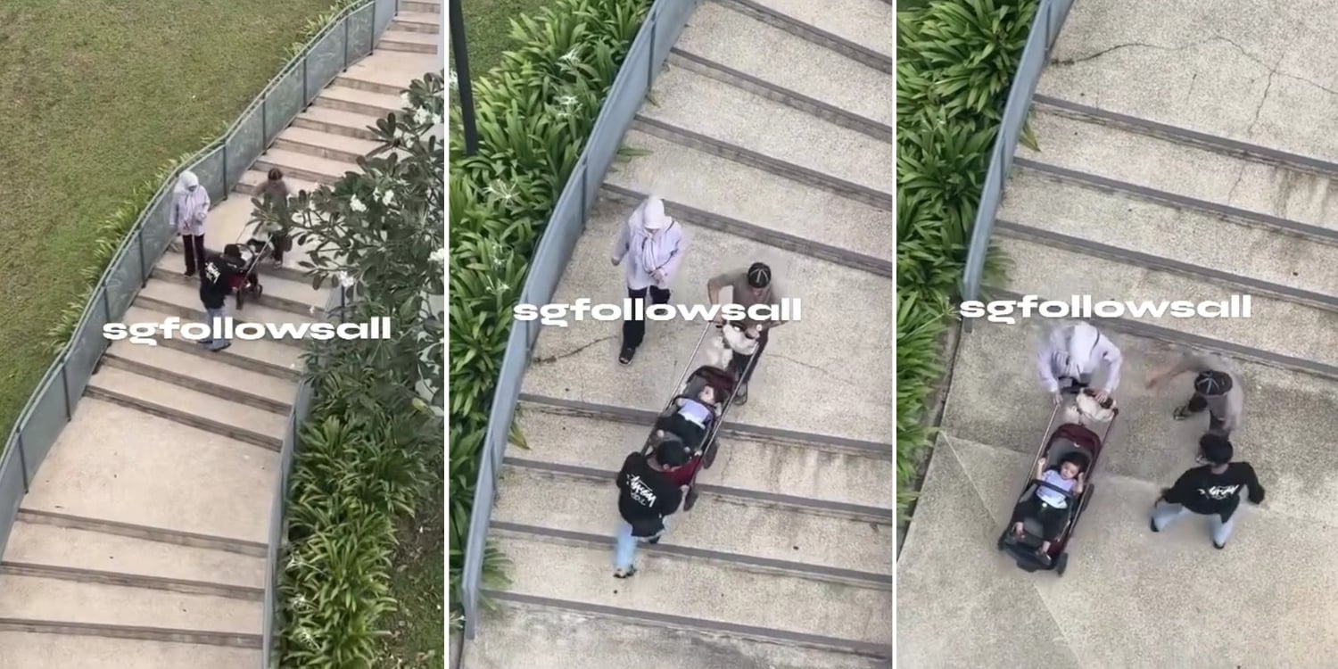 In a heartwarming video, two men were spotted helping a woman carry her stroller down the stairs at ITE College West.
