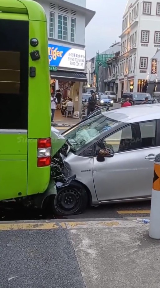 On Tuesday (27 May), bystanders at a Jalan Besar bus stop gawked at the sight of a car that rear-ended an SMRT bus.