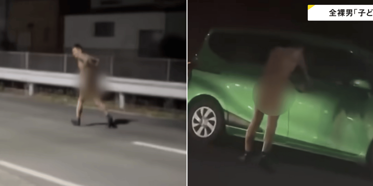 Around 10 minutes later, he was caught on camera at a convenience store 1.7km away, still unclothed, shoplifting multiple items.