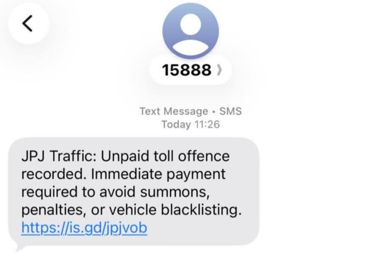 The victim reported receiving an SMS at 11.26 am from 15888, allegedly from “JPJ Traffic”.