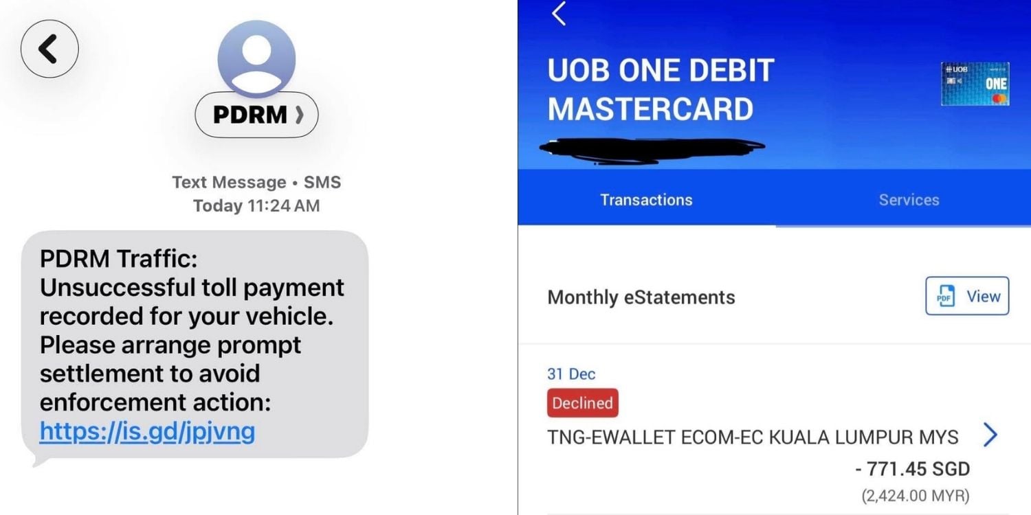 Driver receives scam SMS alleging ‘unpaid fine’ in JB, later gets fraudulent transaction attempt on debit card