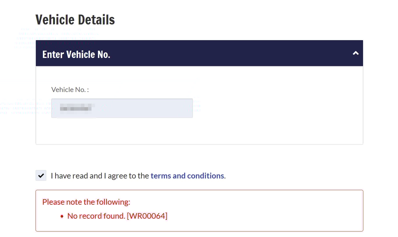 Notably, the Singapore-registered license plate did not produce any valid results on the OneMotoring website.