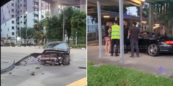 Porsche crashes into covered walkway after colliding with Mercedes in Jurong West, 1 injured
