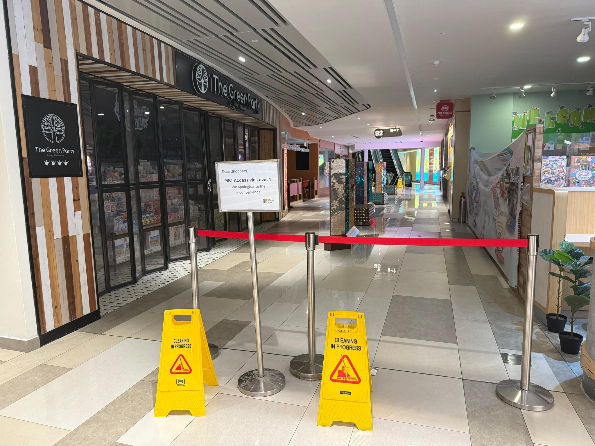 Signs were placed advising shoppers to access the MRT via Level 1.