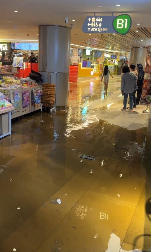 They said they were at the MRT station when they found the underpass and entrance to the mall flooded, and shared a photo of people walking in ankle-deep water.
