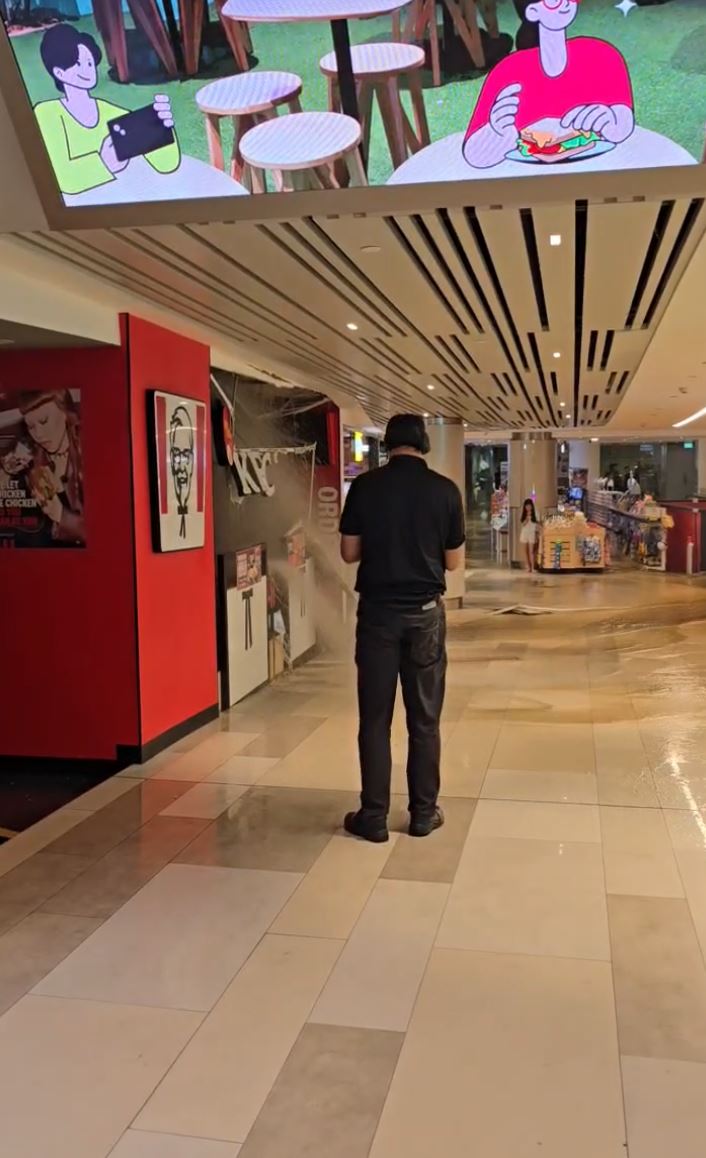 The mall had to cordon off part of the basement leading to the MRT, with water even seeping down to Basement 2 below the KFC outlet, reported 8World News.