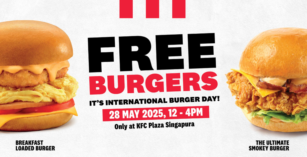 Burger fans, mark your calendars — KFC Singapore is celebrating International Burger Day in bold fashion by giving away 500 free burgers next Wednesday (28 May) at its Plaza Singapura outlet between 12pm and 4pm.