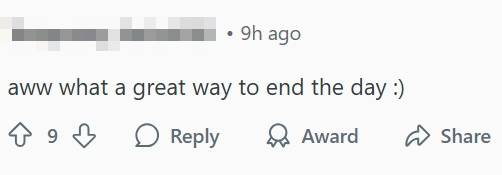 Others simply gushed over the sweet act, calling it a “great way to end the day”.