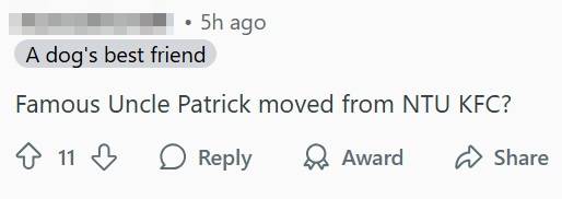 A user even speculated that the kind staff member might be “Famous Uncle Patrick” from NTU KFC, known for his warm gestures.