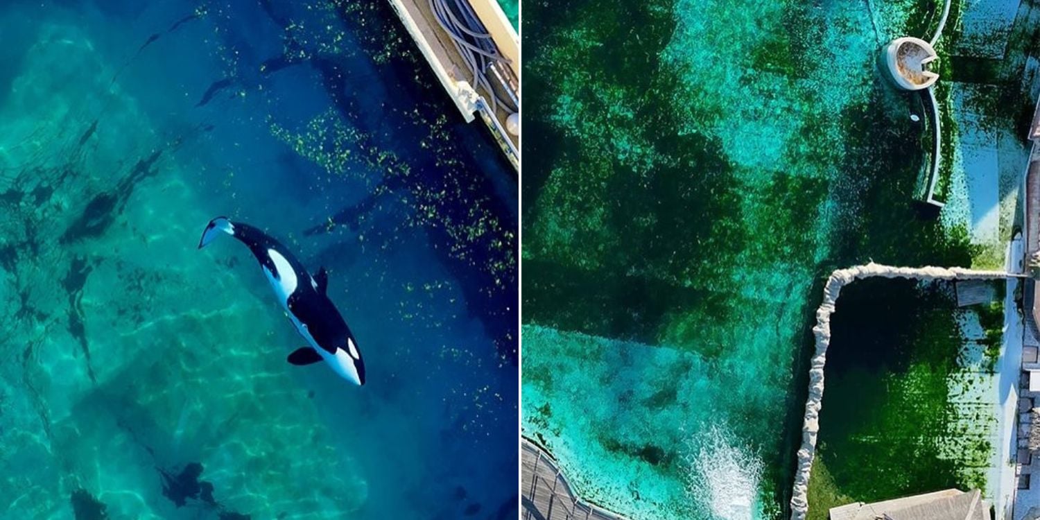 On 11 May, animal rights group TideBreakers released haunting drone footage showing France’s last two captive orcas swimming in algae-filled tanks at the shuttered Marineland Antibes.
