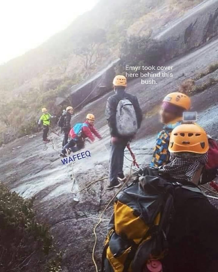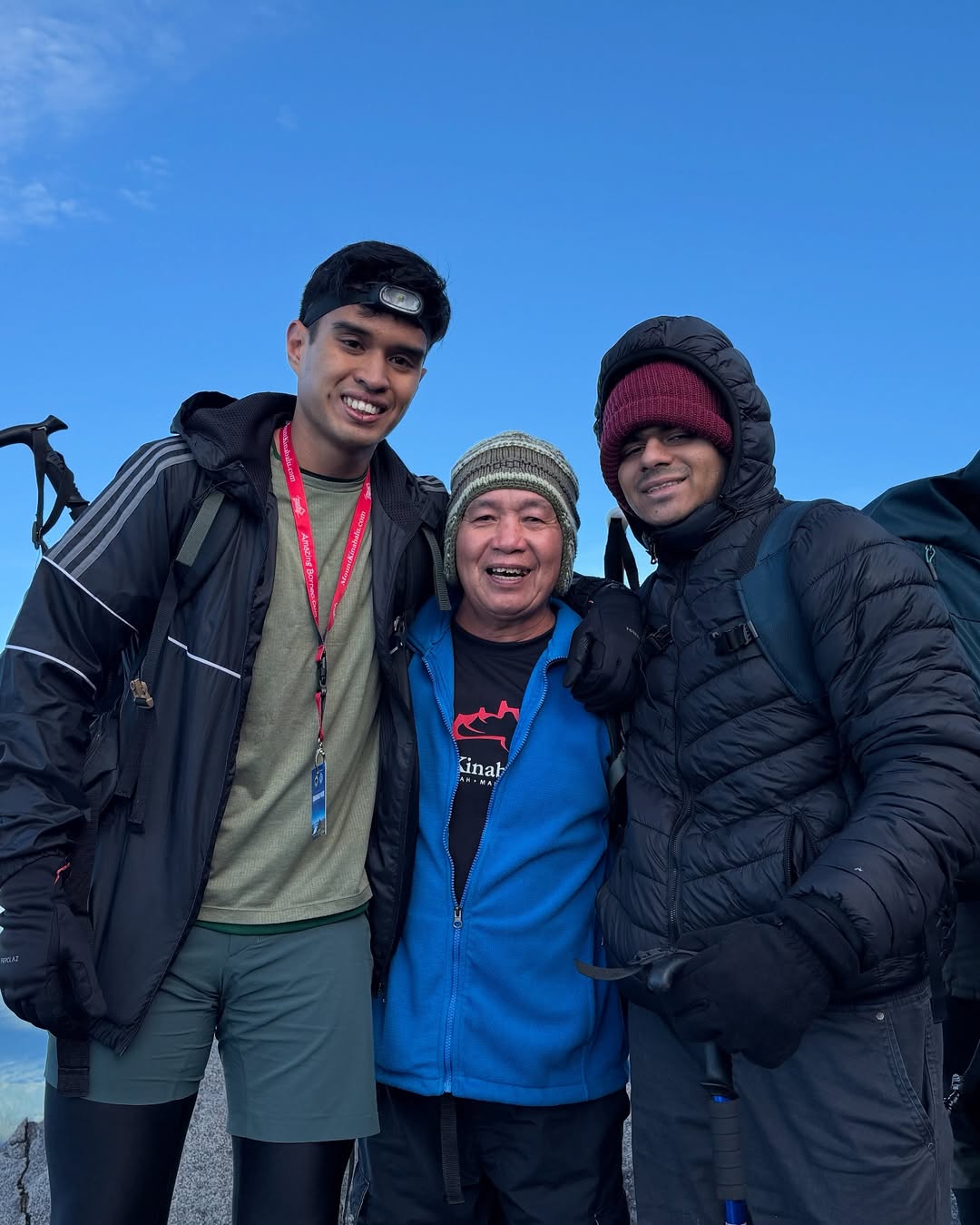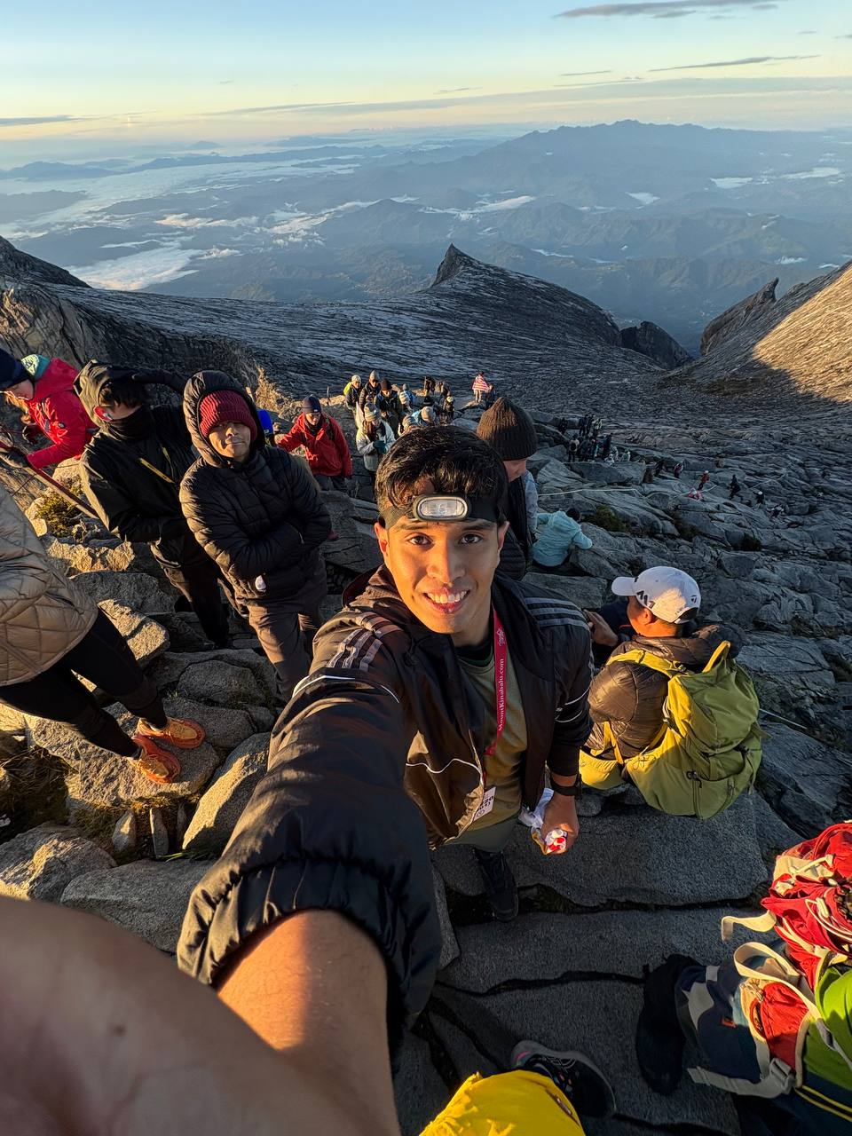 At 5.45am that day, the two of them completed their ascent atop Mount Kinabalu. Emyr shared: